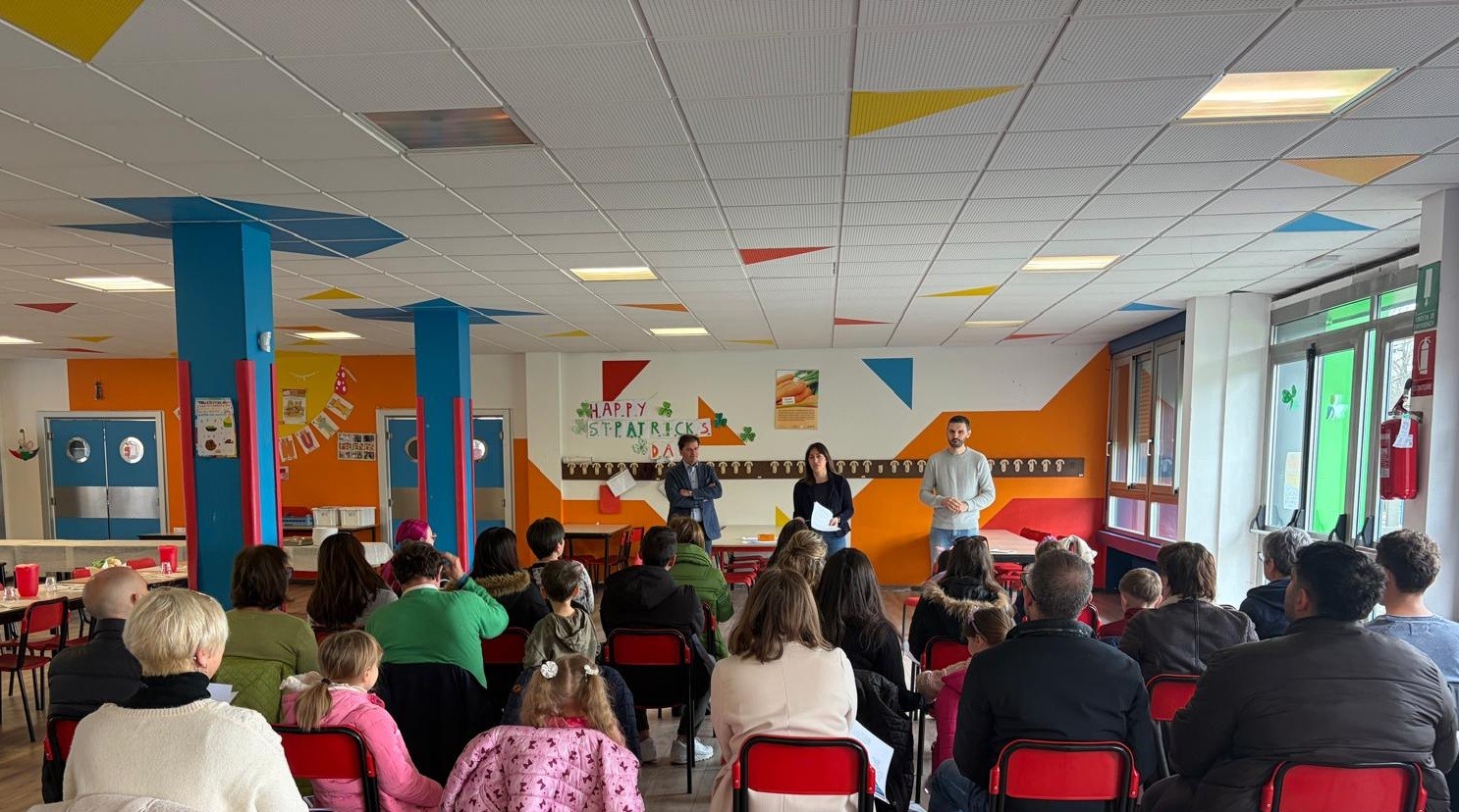 Un momento della presentazione "Cucina a porte aperte" con al centro l'Ass. All'Istruzione Debora Cremonesi e ai lati il Responsabile di Area di Sodexo Gianluigi Testa e il responsabile del servizio per il Comune di Lodi Vechio Luca Forigo